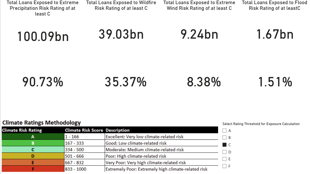 Integrated risk view: climate hazard data combined with loan metrics and portfolio attributes